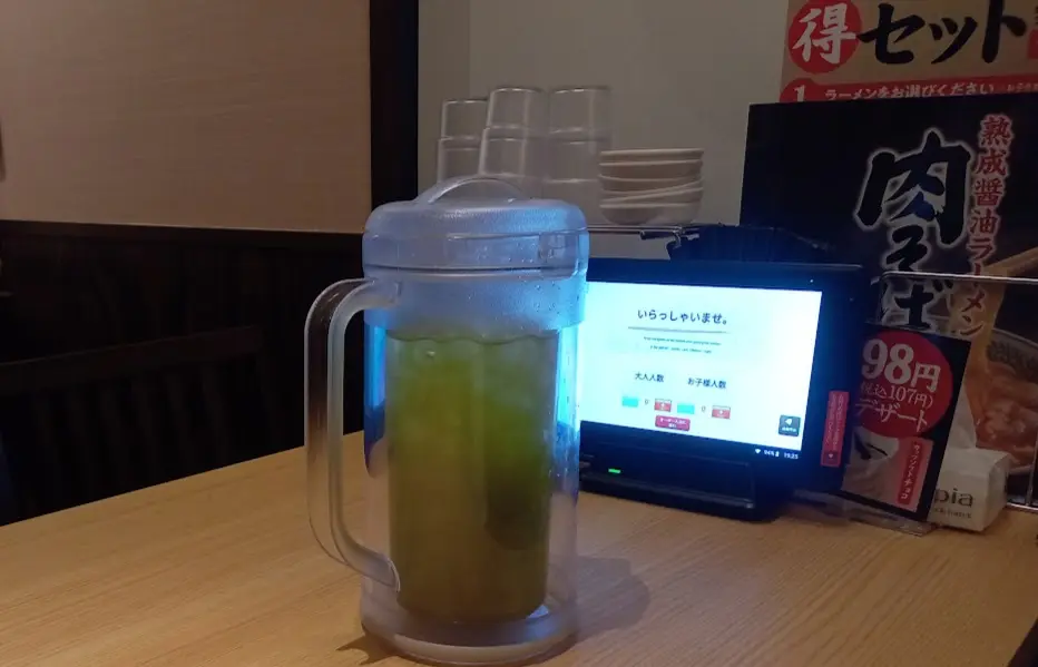 テーブルに置いてあったのは、お水ではなく「緑茶」でした。