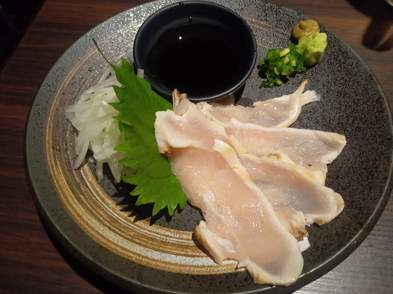 わさびや柚子胡椒も添えられているのでこちらをお好みで利用しながら、一緒に運ばれてきたタレにつけていただきます。