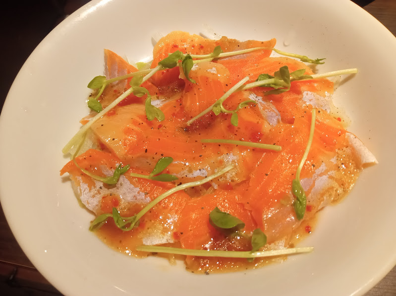 サーモン好きにはたまらない「サーモンカルパッチョ」です。