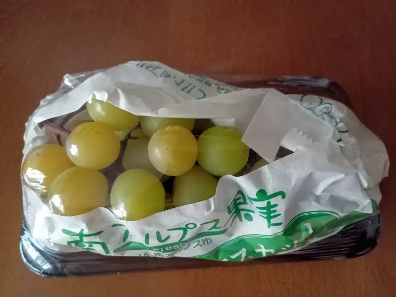 シャインマスカットは、少々黄色く色づいていたのですが、こちらもお店の方のお話しどおり美味しいものでした。