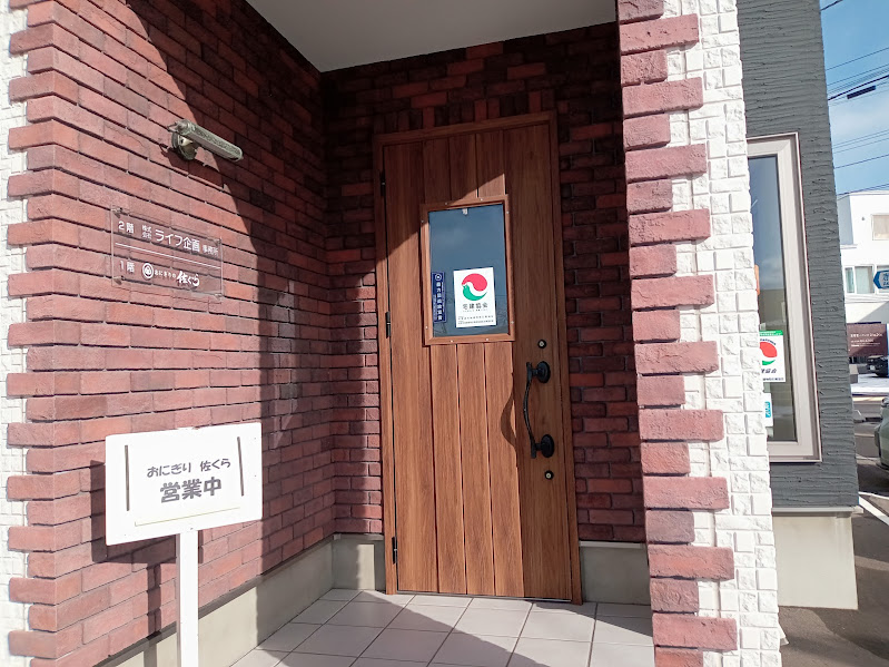 入口が2階にある「株式会社ライフ企画事務所」と同じなので初めてお店に行かれた方は、お店に入るのに少々、躊躇されるかもしれませんが、扉を開けるとすぐその先におにぎりがショーケースに並んだお店があります。