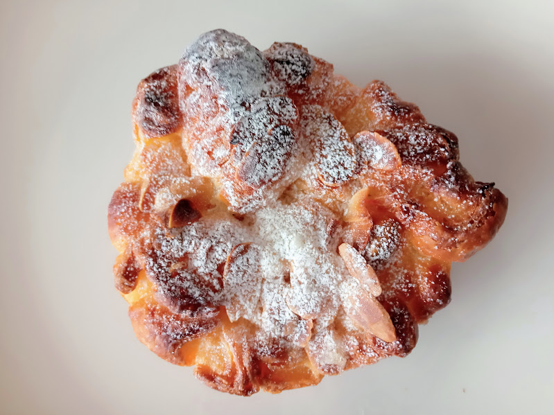 タップリ使われている「アーモンドスライス」の触感が楽しい、ミルク風味の生地にお砂糖がたっぷりかかっているパンです。