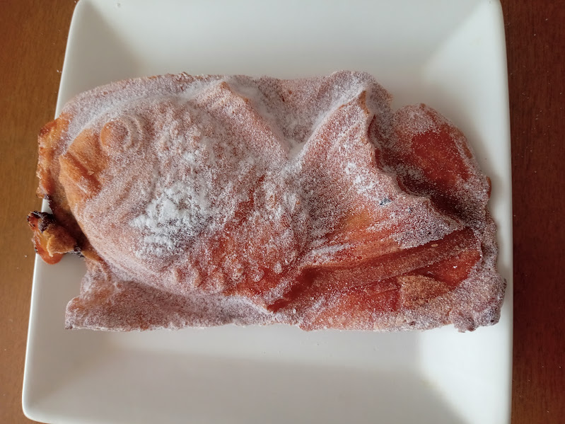 「上吉」の「たい焼き」は、「たい焼き」を油で揚げたもので皮の部分はたっぷり砂糖がまぶされていて、パリパリしています。