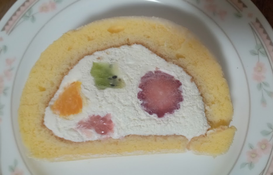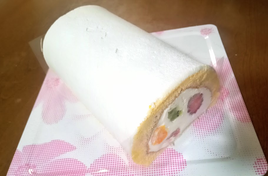 【函館市】「プティ・メルヴィーユ」の「フルーツロールケーキ」は好きな厚さにカットしていただきます! 切った時の断面も可愛いです