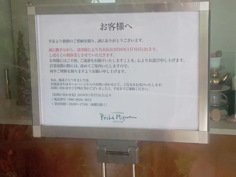 【函館市】2026年1月16日から『フランス菓子ペシェ・ミニョン』が休業していました