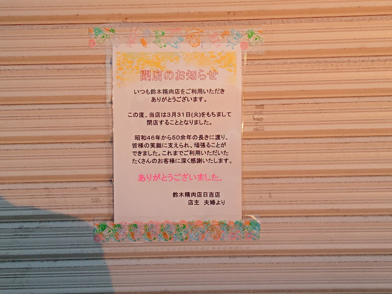 【函館市】2026年3月31日(火)で日吉町にある『鈴木精肉店』が閉店していました