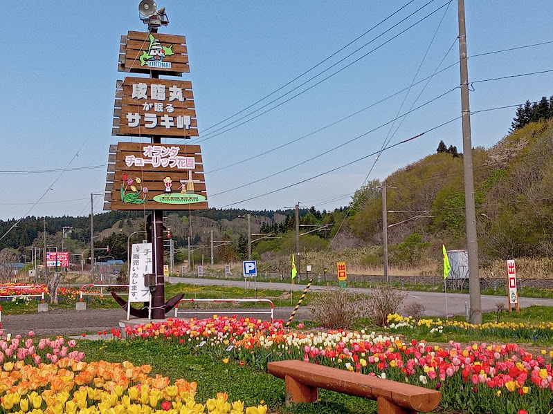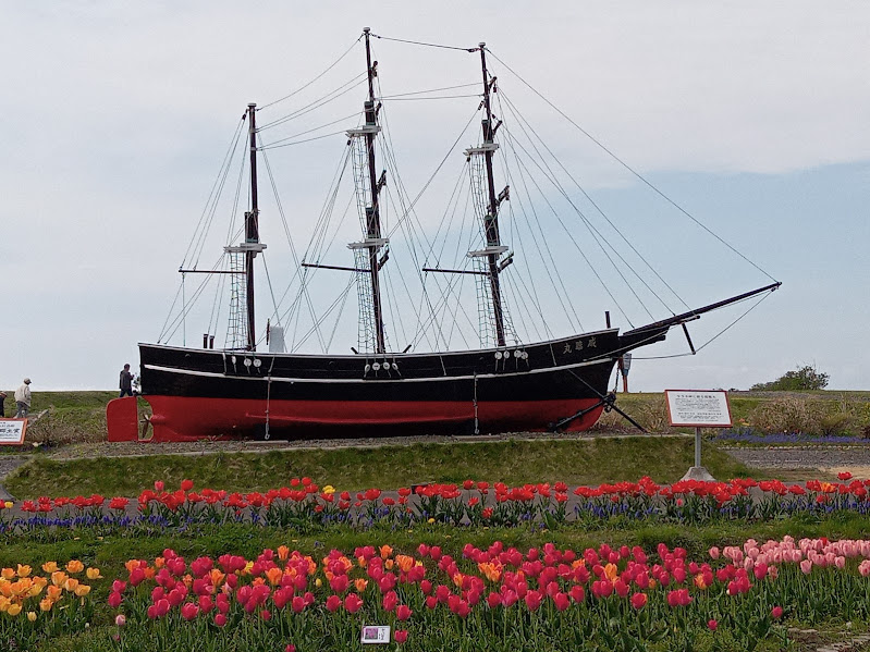 「チューリップ花園」は「咸臨丸」が木古内の「サラキ岬」に眠っていることを知ったオランダ北海道人会会長が「咸臨丸終焉の地に誕生の地であるオランダの国花を植えて欲しい」とチューリップの球根が贈られたのが始まりだそうです。